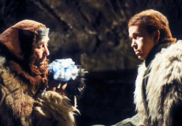 The third double act is the Doctor and his young apprentice Romana. All three double acts work in the same way, they’re all outsiders visiting Ribos to try to steal something, and each has one smart but less experienced junior partner. The comedy arises from the way the three double acts mirror each other, or cross over (for example, Romana and Garron get a scene together in the catacombs, while the Doctor and the Graff lock horns) to the bemusement of the natives. The whole script is witty and clever, with funny little references to “the north” where the alien visitors all pretend to come from. There are some farcical moments – like Unstoffe’s excruciating anecdote about “scringe stones” or the Doctor and Romana’s business in the jewel room – while the Graff’s florid villainy is amusing in its deliberate, scenery-chewing excess. Holmes wisely uses the Key to Time quest merely as a hook to get the Doctor and Romana involved in the story, rather than its main focus.