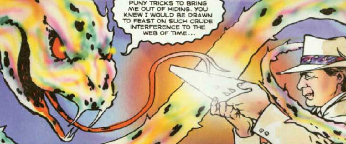 The War Chief is just one element though – along with Nazis, zombies, plus the Timewyrm herself. There’s a sense that Dicks really let rip here, and the result is intoxicatingly insane. In a book range that’s trying to both pick up where Target left off, and become the primary continuation of a defunct TV series, something like Timewyrm: Exodus is almost exactly the kind of thing you need to.