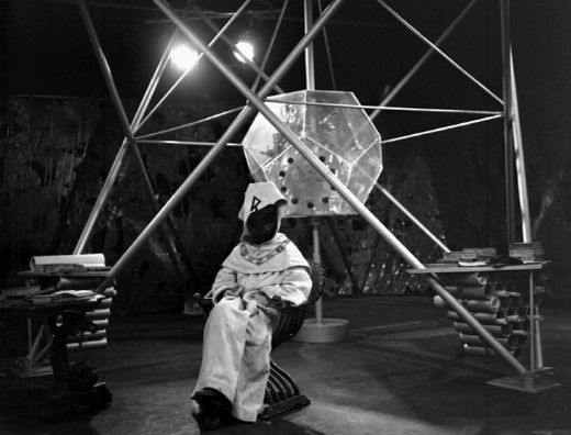 Visually, The Keys of Marinus is as impressive as the last five episodes. Gorrie includes a couple of very neat touches: the shadow of a Voord appearing on the lattice behind the Doctor and friends as they flee the pyramid, and a slow, rather operatic zoom out as the robed Yartek activates the Conscience (which gets brighter and hums at a different pitch every time he inserts a key).
