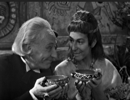 Perhaps this links to the idea of ‘sacrifice’ – the theme of the episode. The title seems to refer to Susan. Having learned of her views on marriage, Tlotoxl sets up her up as the bride for the Perfect Victim – a literal ‘bride of sacrifice’ – while figuratively he’s planning to sacrifice her to unmask Yetaxa. However, there’s another sacrificial bride waiting in the Garden of Peace: Cameca, who is going to have to sacrifice her happiness and hopes for the future on the altar of the Doctor’s escape plans. Hartnell gets some lovely scenes with Margot Van der Burgh where he spits out his cocoa having inadvertently proposed, and then contemplates ‘a garden of our own’ together. But later, he makes light of the whole business with Ian, dismissing it all as ‘neither here nor there.’ Neither he, nor Barbara is coming out of this smelling of roses. While she may dislike human blood sacrifice, Barbara’s quite willing to sacrifice Autloc’s reputation and way of life to get her own way – she might look sheepish when he asks, ‘Will you sacrifice us to save your handmaiden pain?’ but it doesn’t mean she’s going to change her mind. This is shaping up to be the first story where everyone is worse off because the Doctor went there, on a whim.