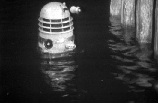 Terry Nation plays with audience expectations, though, by holding back the Dalek reveal to the end of the episode. And just as the surprise at the end of Planet of the Daleks isn’t that there are Daleks on Spiridon, but that there are invisible Daleks on Spiridon, here the surprise isn’t that there are Daleks on Earth – but that there are Daleks in the River Thames.