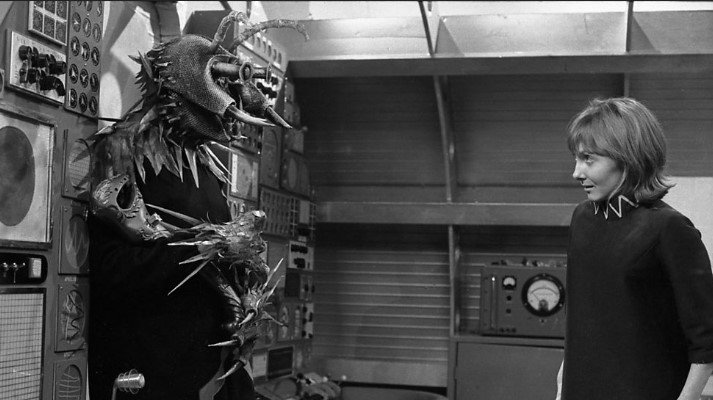 New year, new team. The Powerful Enemy opens slightly differently than we’ve become used to: the TARDIS lands in some caves (‘”materialised” is a better word,’ says the Doctor) but rather than then following the crew as they explore the new environment, it cuts directly to a crashed spaceship populated by a teenager, Vicki, and an injured man, Bennett. In an efficient bit of dialogue they fill in the backstory – this is the planet Dido, they’re waiting for a rescue ship that’s three days away, and someone called Koquillion is menacing them – so that we know more after the first three minutes than we did after 25 minutes on Skaro.