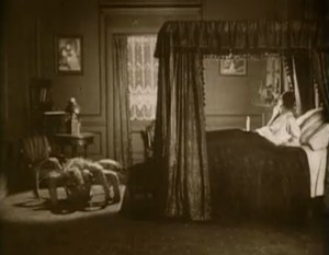 However, this does not happen before the most unforgettably grisly scene in silent horror, as a sleeping Jekyll begins to convulse in a nightmare, and glimpses a vile fusion of Hyde with an enormous spider. Like something from an MR James story, this vaporous spider Hyde scuttles across the bedroom floor, crawls onto Jekyll’s chest and thrusts itself into Jekyll’s face. It’s an indelibly horrific image that transcends the drag of much of the picture.