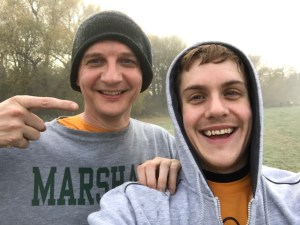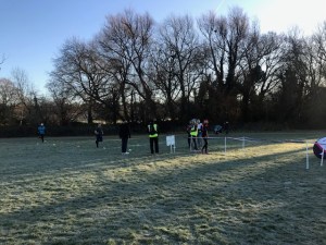 The course is two clockwise laps, and begins in Summerhouse Playing Fields (right next to Millwall FC’s training pitches). Once the runners gather and are briefed, you set off on grass, quickly join a track for about 100m, then bear right onto grass and run round the three sides of the playing fields (all marked with cones), before bearing left through a narrow gate. This is the trickiest part of the course, as the ground here can get waterlogged and very muddy.