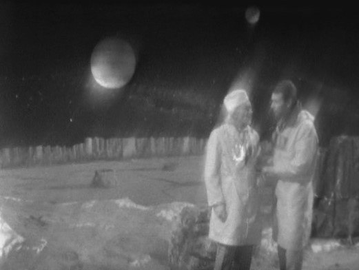 While, Barbara and Vicki have quite a sweet conversation about Vicki’s childhood, the Doctor and Ian go exploring the planet’s surface. There’s a neat echo and ‘glow’ effect that does help to make this feel like one of the oddest environments the TARDIS has ever visited. The Doctor remains resolutely high-spirited though, as concerned about the disappearance of Ian’s pen as the disabling of the Ship, and rushing about full of beans but apparently devoid of sense. It’s a thoroughly strange choice for Hartnell to play it so silly (is it all meant to be part of the discombobulating effect?), and it’s only William Russell doing his best to look foreboding that gives these scenes any drama.