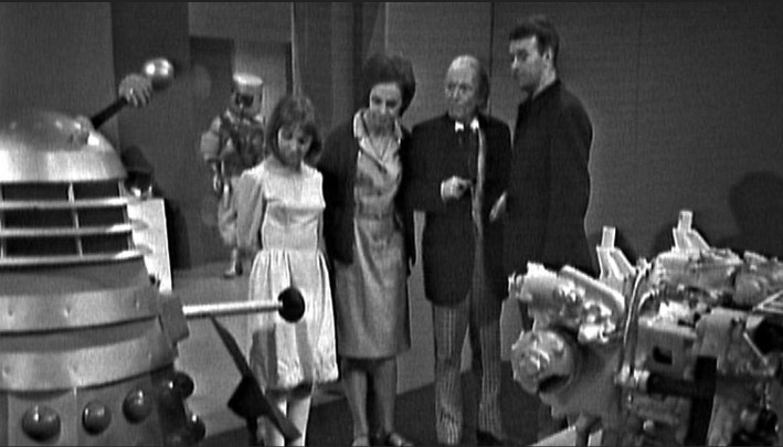 This feels like a critical weakness in an episode which to that point has been filled with fantastic images and scenes. Having the regulars come face to face with a Dalek – also reduced to a Space Museum exhibit – is clever because it suggests whoever created the museum must be a formidable danger if they’re able to turn the Doctor’s arch enemies to items of idle curiosity. It also gives Vicki a chance to remind us she’s from the far future, when the Daleks were something from the history books. This is further reinforced when the TARDIS itself is reduced to an inaccessible ghost, removing any chance of escape.