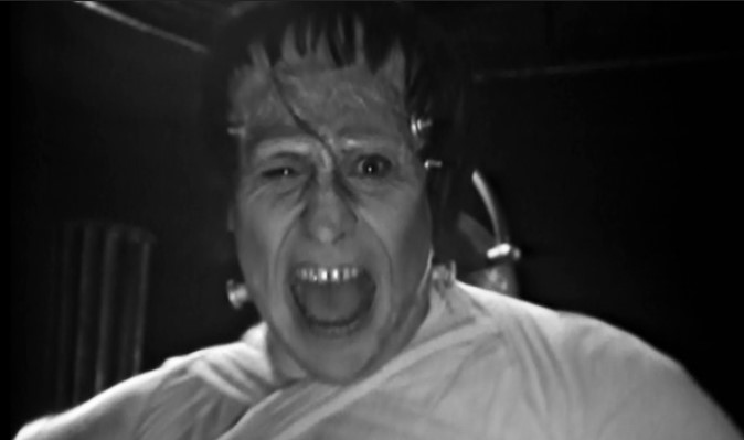 While Barbara and Vicki wander round downstairs getting spooked by Dracula, the Doctor and Ian head upstairs to the lab for the episode’s best gag: a dismissive Doctor mocks Ian’s reluctance to see what’s on the slab – only to leg it at speed when Frankenstein’s Monster rises from under a shroud.