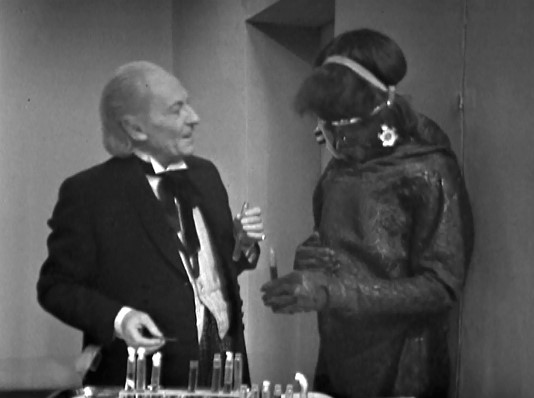 At least the Doctor seems genuinely crushed when one of the Guardians dies, and is eager to volunteer his services finding a vaccine. In the meantime, the Guardians adopt some safety measures, like fancy face masks (modelled by Michael Sheard in his first Doctor Who appearance), but not social distancing or enforced lockdowns. The race for a cure is fairly basic sci-fi stuff, and the episode hilariously cuts away before Hartnell has to explain any of the science of the virus, but he does get the best line: