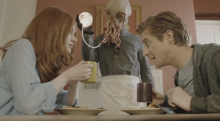 They’re all funny (especially the Doctor arriving in the middle of the night, and out of synch), but mostly notable for showing a few, split-second glimpses of Dinosaurs on a Spaceship, and for Gillan’s terrible wig. But the last one leads directly into Asylum of the Daleks, with Amy throwing Rory out of their house, apparently in a rage. What he’s done, and what this all means is a mystery that will have to wait until next year for an answer.