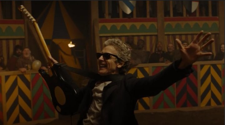 The problem, for me, is that even if the audience bought that the Doctor might kill baby Hitler, that ends up such a small part of the episode. Instead, there’s an understandable focus on spectacle – some of it good (the killing fields of Skaro; the Dalek city reveal), some of it indifferent (the planes stopping to get Clara’s attention so that Missy can find where the Doctor is hidden via a UNIT Google), and some of it quite bad. The latter is essentially the long sequence of the Doctor arriving playing a guitar on a tank before shouting ‘dude’ at a medieval crowd. It screams “we wrote this for the Confidential clips” and makes the already bitty plot grind to an excruciating halt.