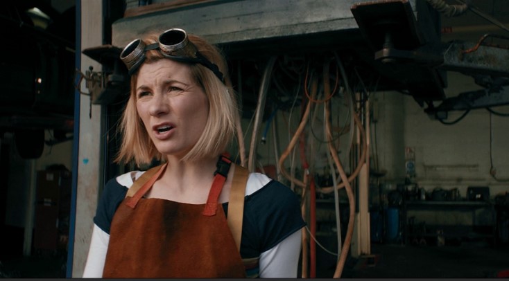 Best of all, we re-meet the Doctor in full goggles-and-apron mode, doing engineering work on the TARDIS. It’s a great image, and sets up Whittaker as a much more confident and credible Time Lord than in her often overly gawky first series. She gets a great sequence battling a killer SatNav and a couple of good hero moments firstly when she puts Stephen Fry’s officious C right about her new sex, and later when she confronts the Elon Musk-ish Daniel Barton at his own birthday party before giving chase on motorcycle and leaping on board a moving plane.