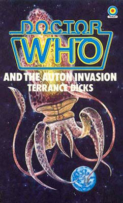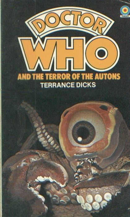 4. Doctor Who and the Terror of the Autons, by Alun Hood. By way of contrast, this bears no relation to anything in the episodes, instead depicting a creeping horror that wouldn’t look out of place on the front of a Pan anthology. A rearing caterpillar with a single human eye, grotesquely melded with a crab and an octopus, beneath a queasy mustard yellow version of the Doctor Who logo. Had this appeared on screen, Mary Whitehouse would have exploded with rage like a Roy Knipe Dalek.