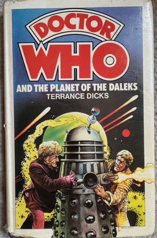 In a rare move for Target Books, this novelisation is the continuation of the previous month’s Doctor Who and the Space War, providing the back half of the waggishly-nicknamed The Master’s Dalek Plan. Except, there’s no indication in the text that Dicks and Malcolm Hulke collaborated at all: the Doctor and Jo leave The Space War in fine fettle, but begin The Planet of the Daleks in a sorry state, with the Doctor, like Steven in The Daleks’ Master Plan, threatening to succumb to injuries sustained during his previous adventure and forced to send a desperate message to the Time Lords.