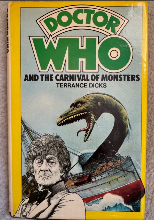 But mostly this is a straightforward adaptation of great scripts, with the emphasis in all the right places (the vicious and unrelenting Drashigs wreaking havoc inside the Scope) and a smidgin of Malcolm Hulke’s social commentary, such as when Kalik wishes to test an agitating Functionary’s nervous system for signs of disease or mutation, and Dicks adds, “It did not occur to Kalik that it was not the rebellious Functionaries who were abnormal, but the conditions under which they had to live and work.” In Chris Achilleos’ striking yellow cover with looming plesiosaur, this is as solid a novelisation as you can get. Grade 3.