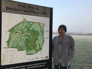 I drove to Greenwich as the course is not actually anywhere near the famous bits of the borough but tucked away south towards Eltham in Avery Hill Park. There’s lots of parking and a toilet at the café in the park. Start and finish are at the north end of the park, and the course takes you on three laps mainly on grass around the perimeter. Slightly undulating, but not too taxing.