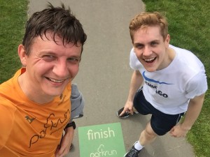 I drove and parked in the sports centre next to the park. This is run mainly on grass around sports fields, for three laps. It’s pretty flat. The course is not very interesting – the main views are of the main road that runs down one side of the sports fields, although there are a couple of landmarks like an obelisk to break things up a bit. It’s made up for by an incredibly welcoming group of volunteers, who organise coffee at the sports centre afterwards. Most excitingly, on the day I went, Paul Sinton-Hewitt, inventor of Parkrun, happened to be helping out and it was a pleasure to say hello to the man behind it all.